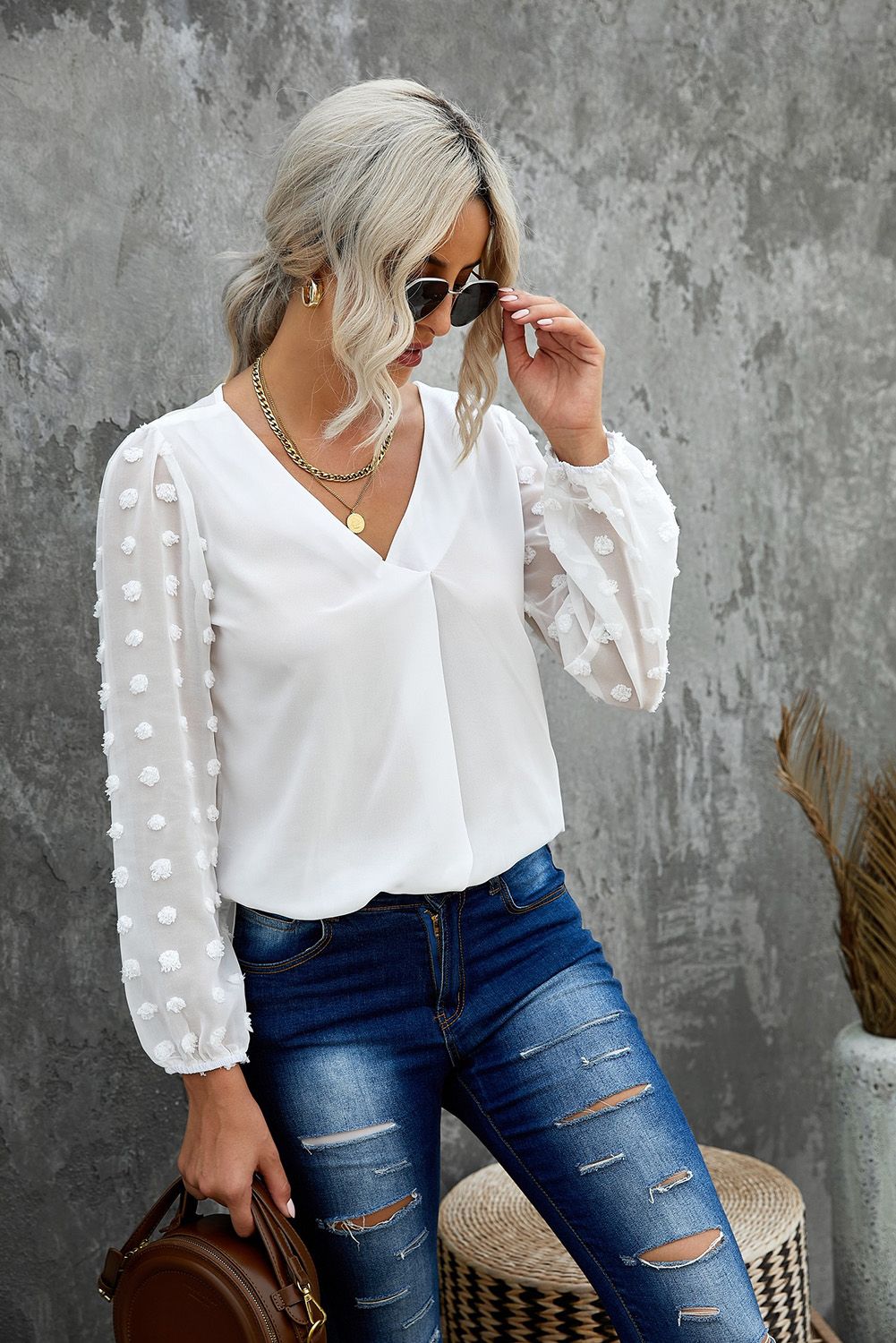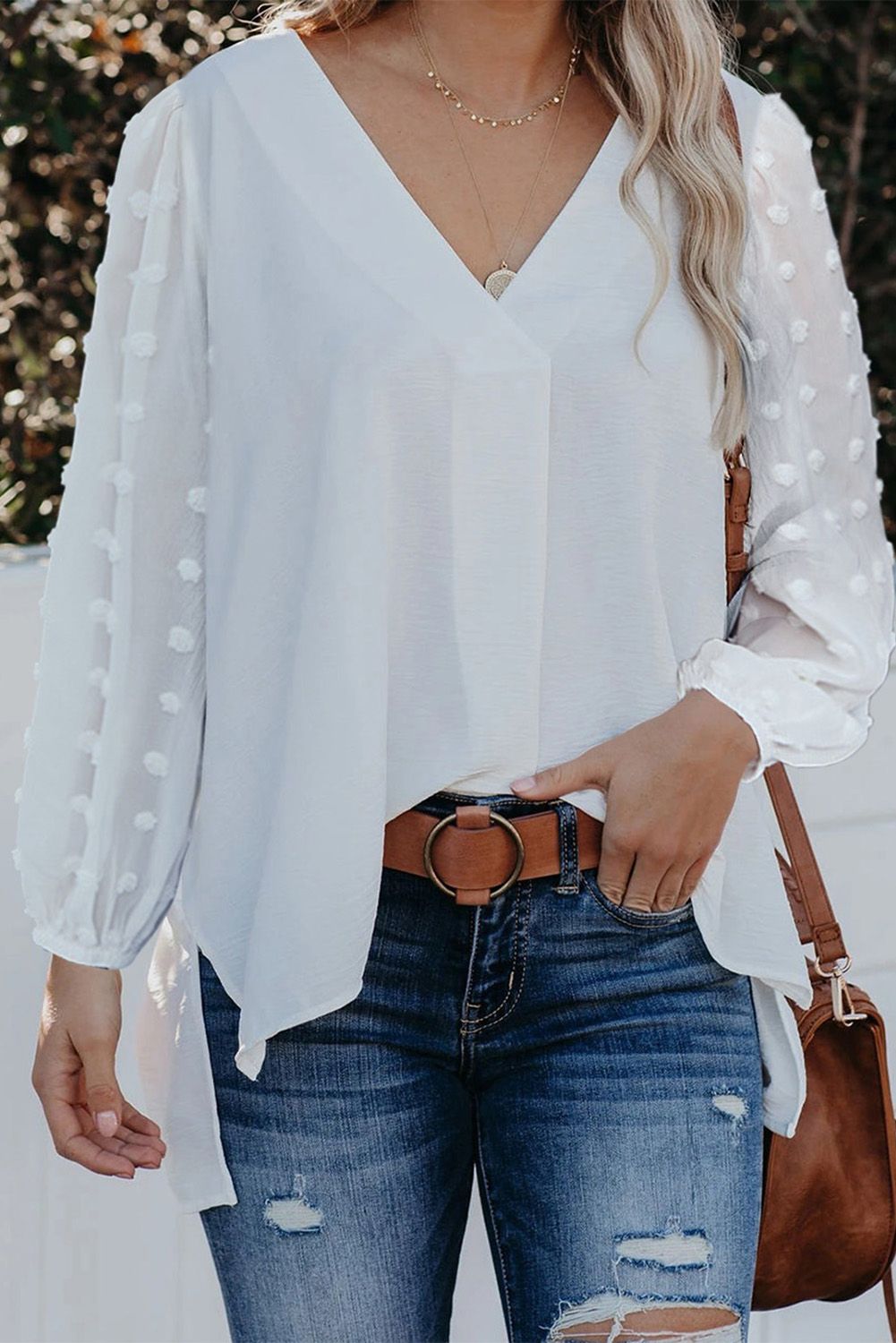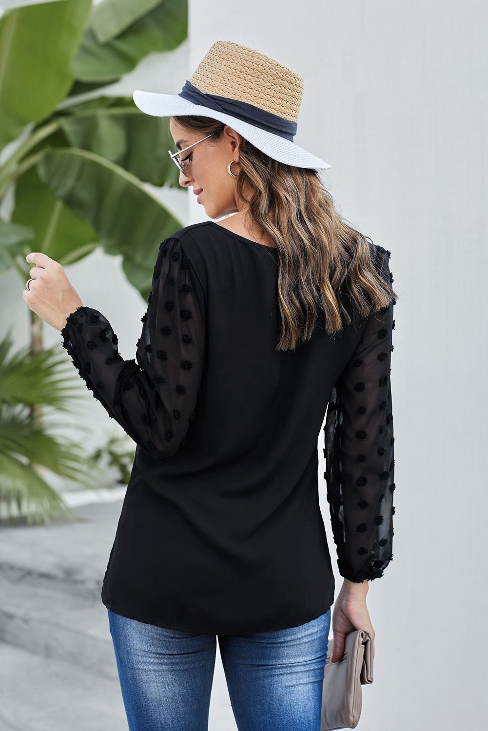 The Swiss dot in the sleeve gives you a elegant daily outfit