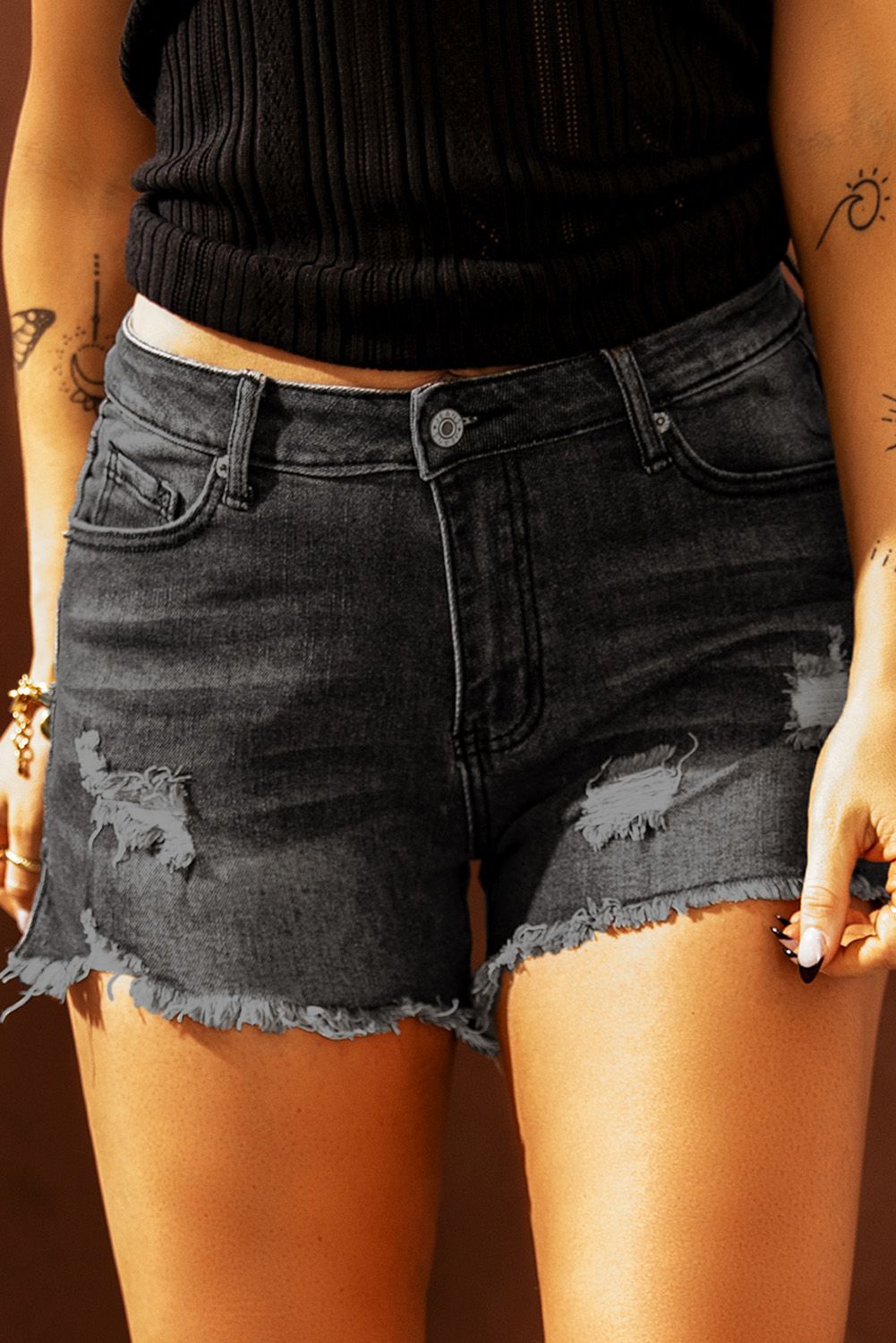 Our Distressed Ripped Denim Shorts with Pockets are the ideal summer shorts This light washed pair boasts a stretchy high rise fit and a frayed and distressed hemline A subtly edgy pair with a good length, effortlessly pair these shorts with all of your summer faves Finished with a front fly zipper and button closure and a classic five-pocket style You can easily find womens denim shorts wholesale for all ages
