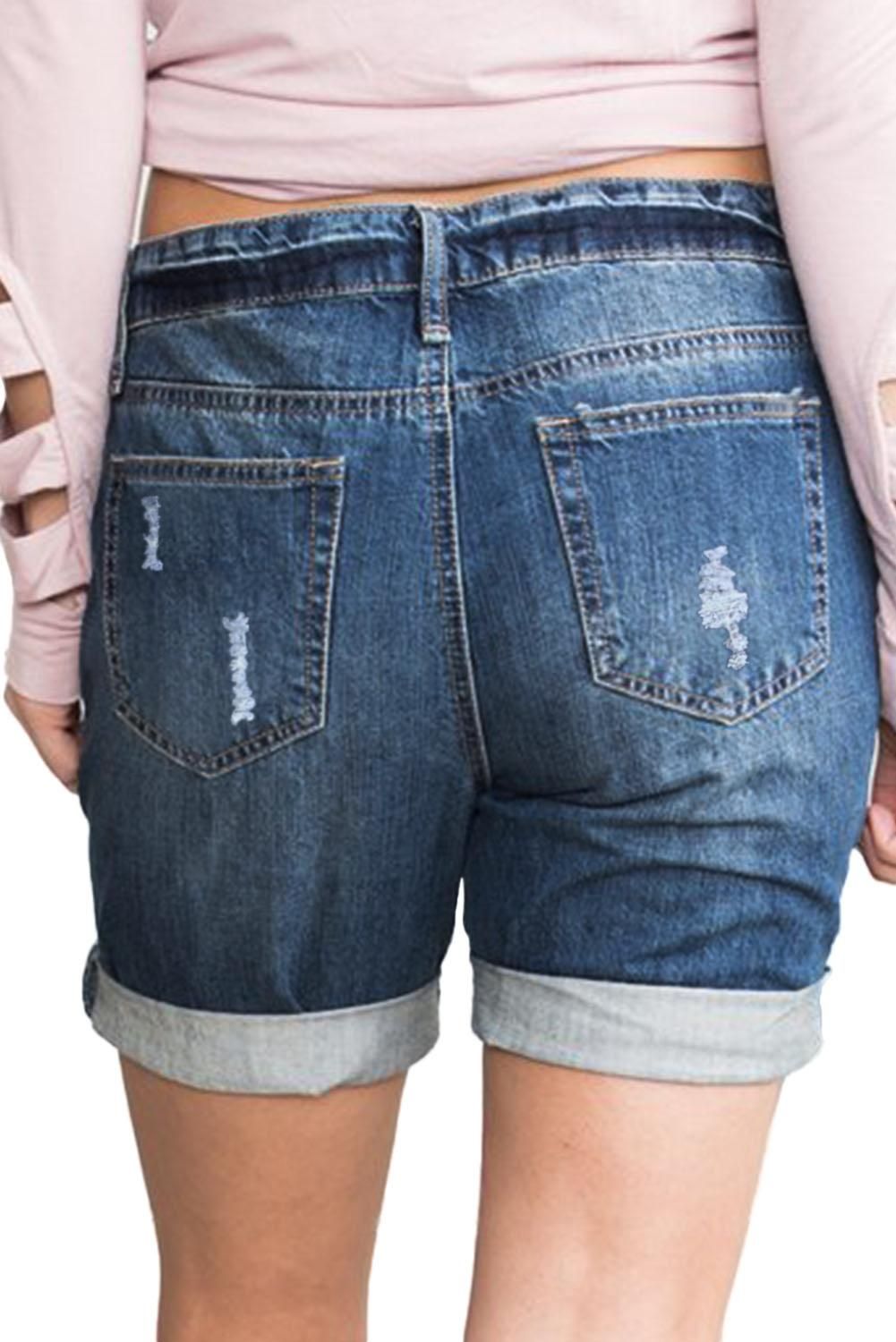 Dark Blue Denim Distressed Boyfriend Short